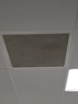 - Mounting: Horizontal ceiling-mounted with hinged-core grille