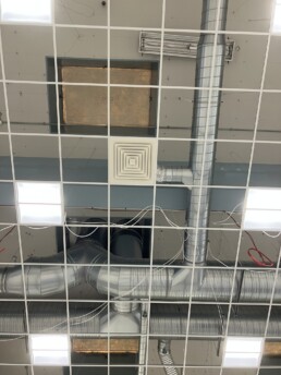 The specification was refined during the project development, with two Tilevector Solo units added to serve the back office area. Chris Ward attended the site during installation to support the contractor and document the wall-mounted fan convectors being fitted.