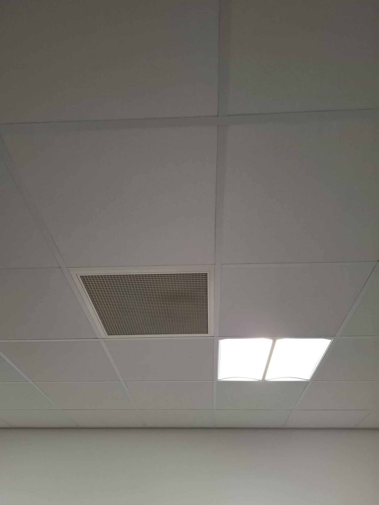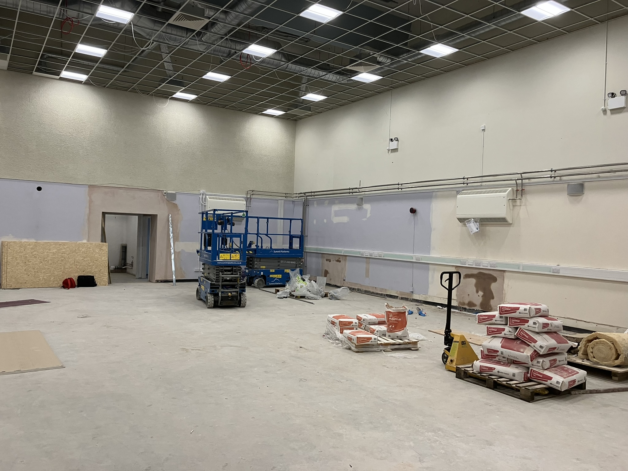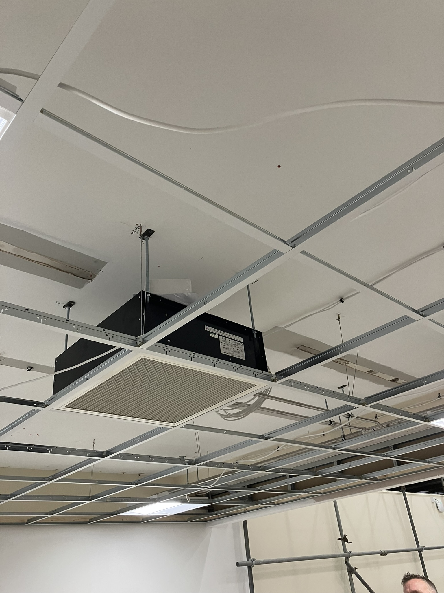 The specification was refined during the project development, with two Tilevector Solo units added to serve the back office area. Chris Ward attended the site during installation to support the contractor and document the wall-mounted fan convectors being fitted.