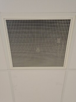 - Ceiling-mounted Solo units fitted into false ceiling grid with hinged-core grille