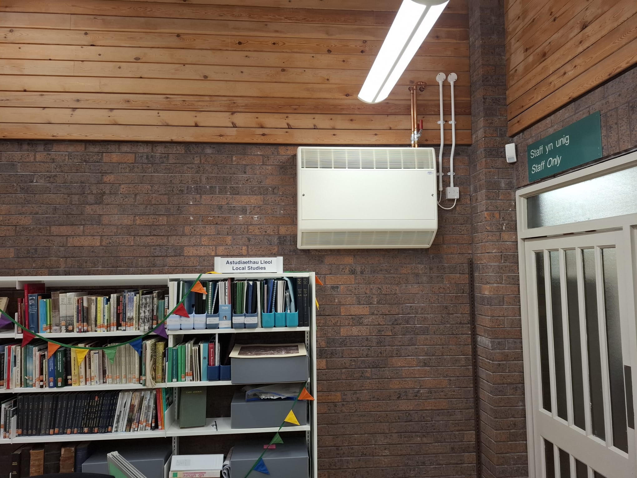 When the existing hot air heating system at Ystradgynlais Library in Swansea failed, the building required a reliable replacement heating solution. CF Roberts (Electrical Contractors) Ltd approached SPC seeking heating options, with the initial enquiry mentioning Fan Convectors or ceiling grid-mounted coils as potential solutions. SPC’s Area Sales Manager, Chris Ward, conducted a site survey to assess the requirements and identify the most suitable heating approach for the space.