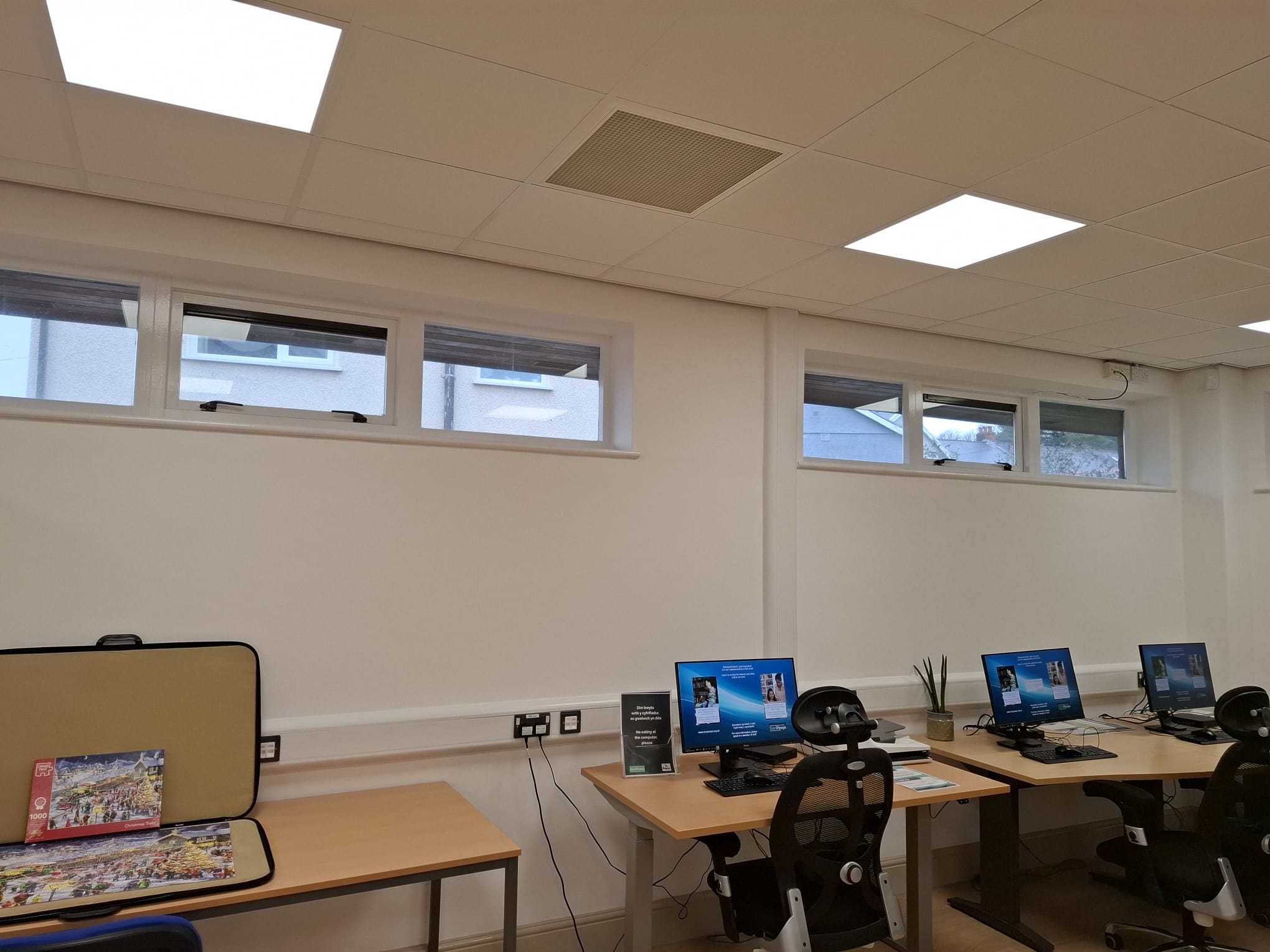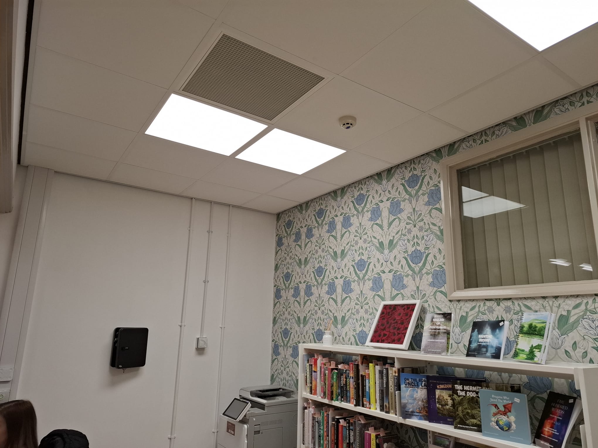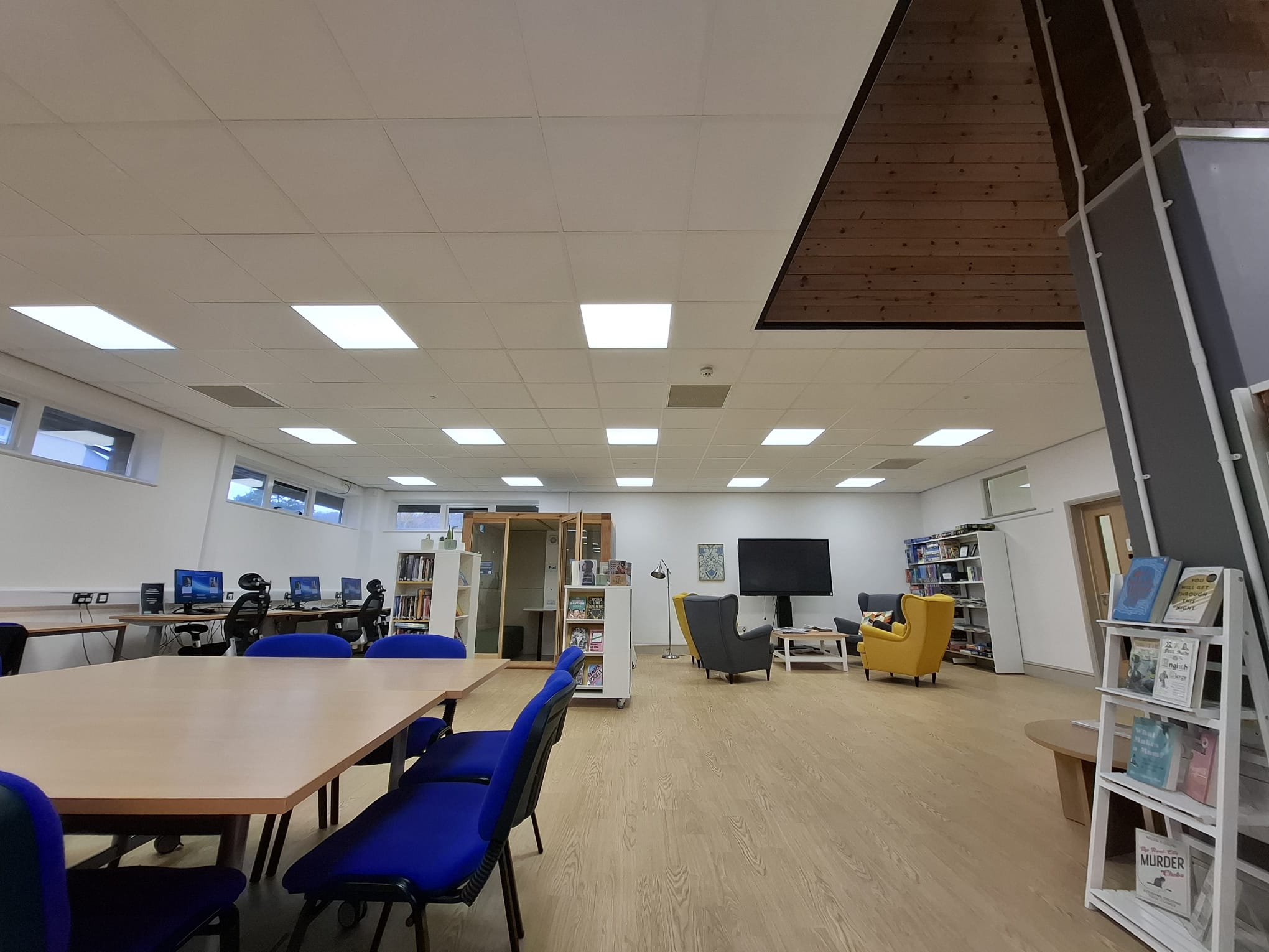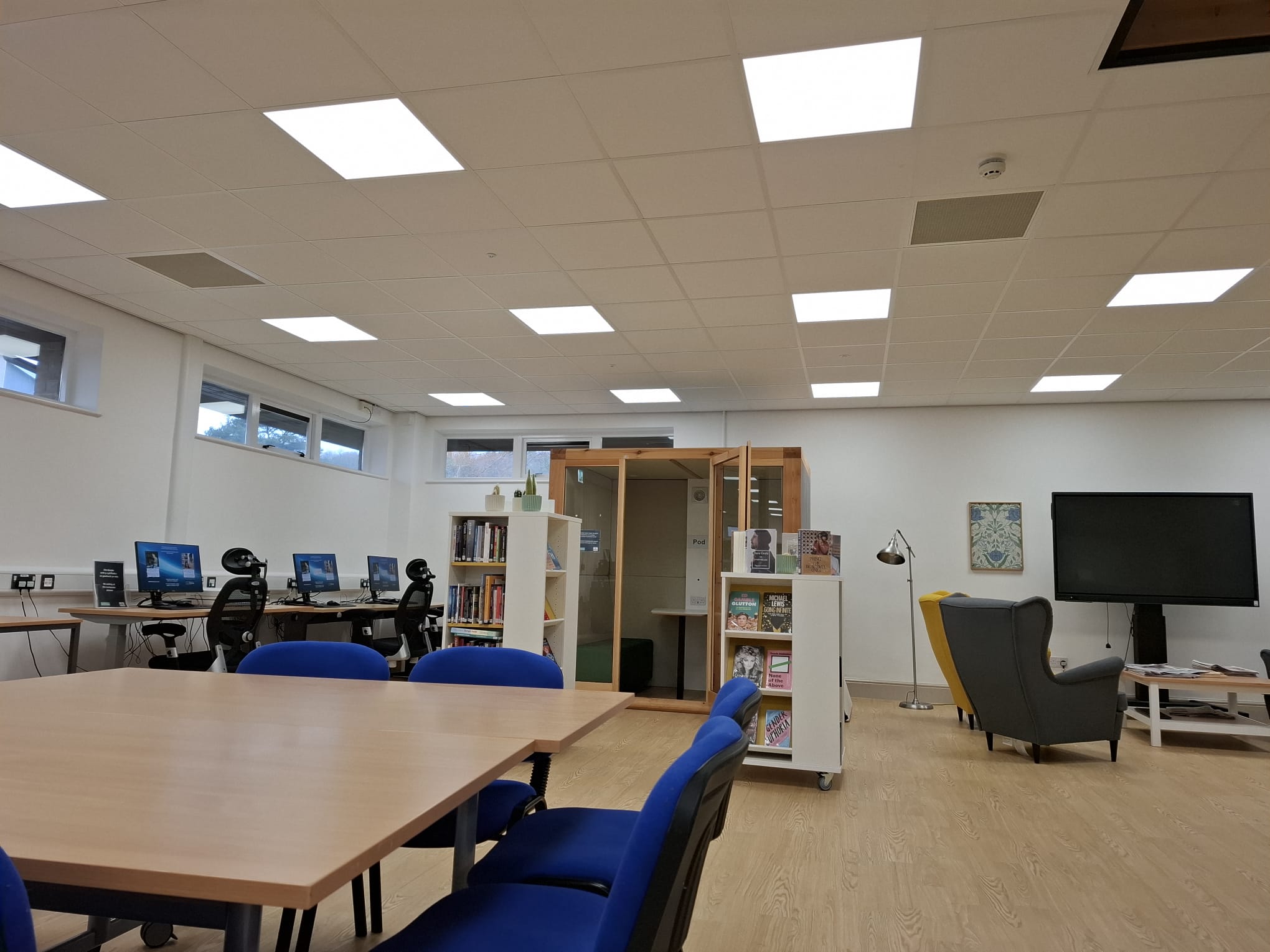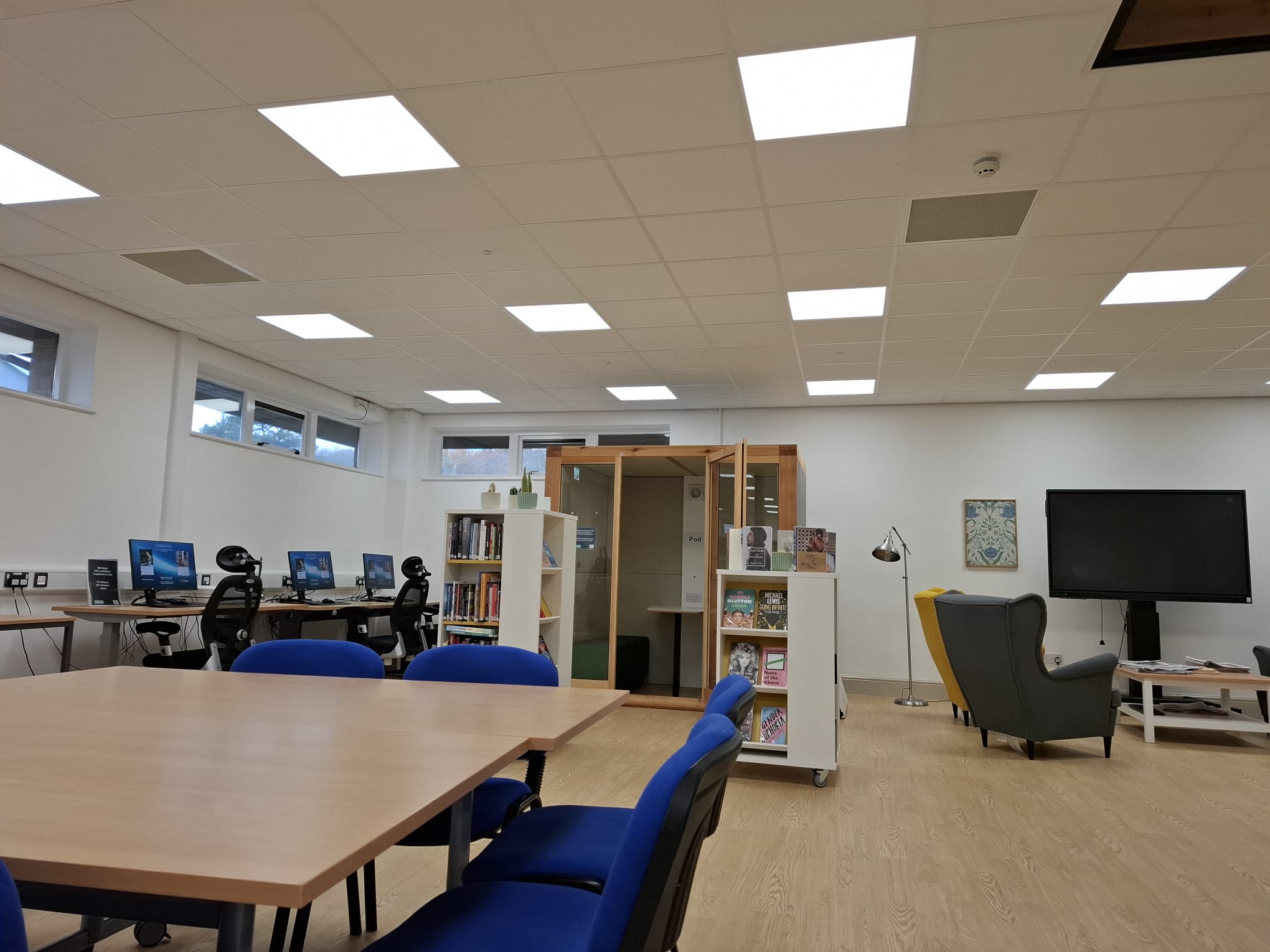 During the survey, Chris identified that the library featured T-bar suspended ceiling grids throughout the main library space, making it an ideal application for SPC’s Tilevector range, which integrates seamlessly into standard 600mm ceiling tiles without requiring additional structural modifications.
