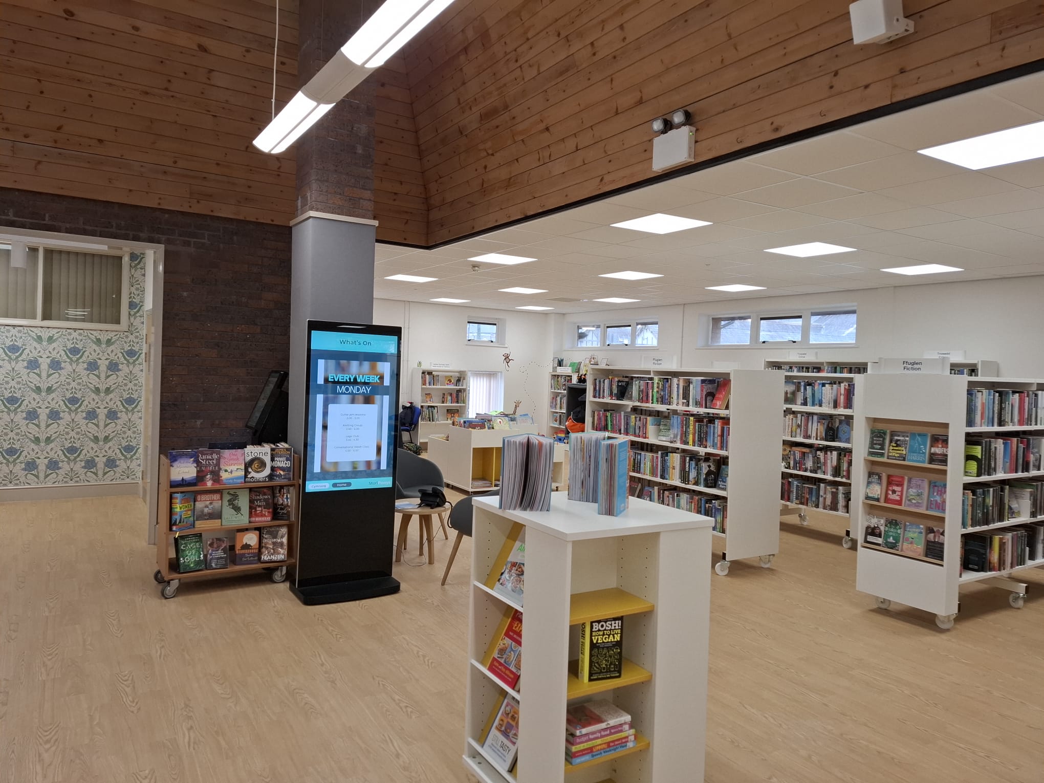 The installation by CF Roberts provided Ystradgynlais Library with a modern, energy-efficient heating system that replaced the failed hot air system. The Tilevector units offered a discreet heating solution that integrated seamlessly into the existing ceiling infrastructure, while the Supreme Fan Convector delivered higher output for the Pine Room area.