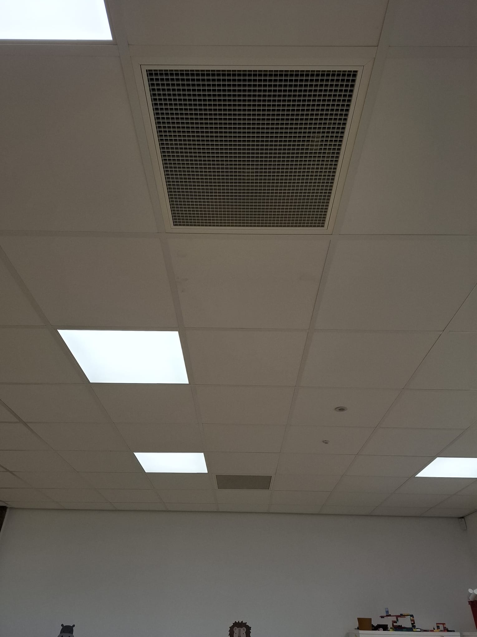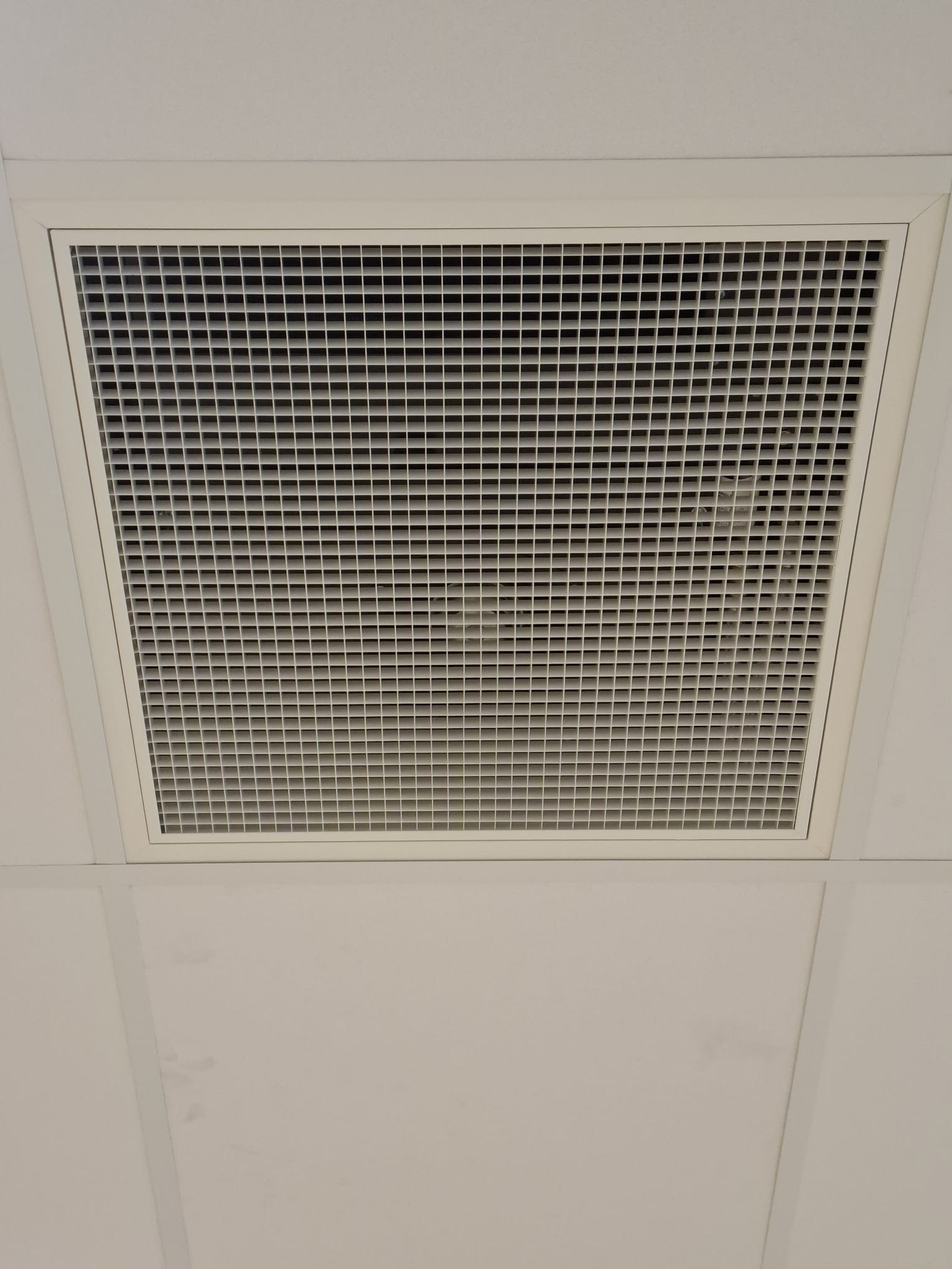 - Ceiling-mounted Solo units fitted into false ceiling grid with hinged-core grille